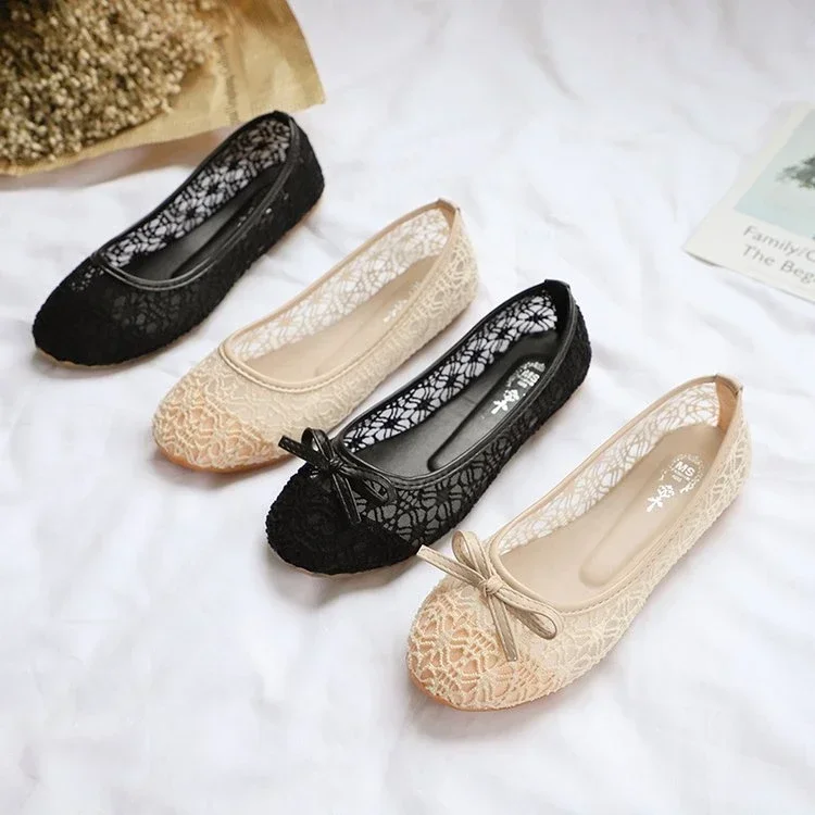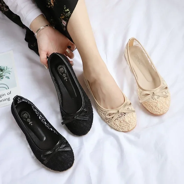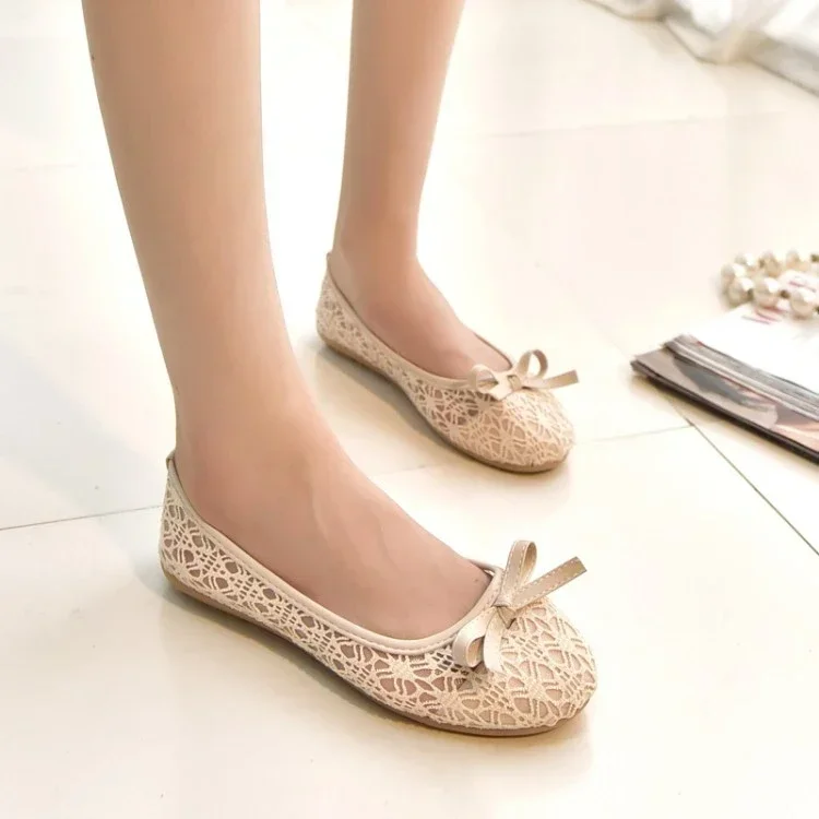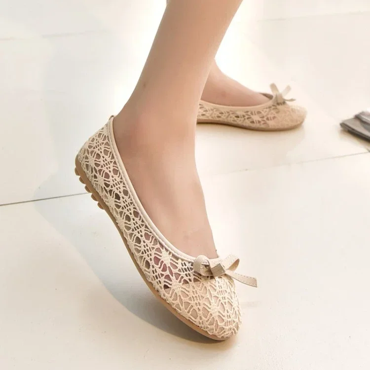 2024 New Women Flats Shoes Ballet Flats Fashion Bow-Knot Women Shoes Slip On Cut Outs Flat Sweet Hollow Summer Female Shoes