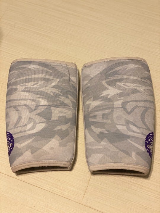 White Inaka Power Knee Sleeves from their first release! Size Large. Worn a fair amount of times but just need a smaller size. These will be washed and sanitized prior to shipping. If you have any questions or concerns please reach out!