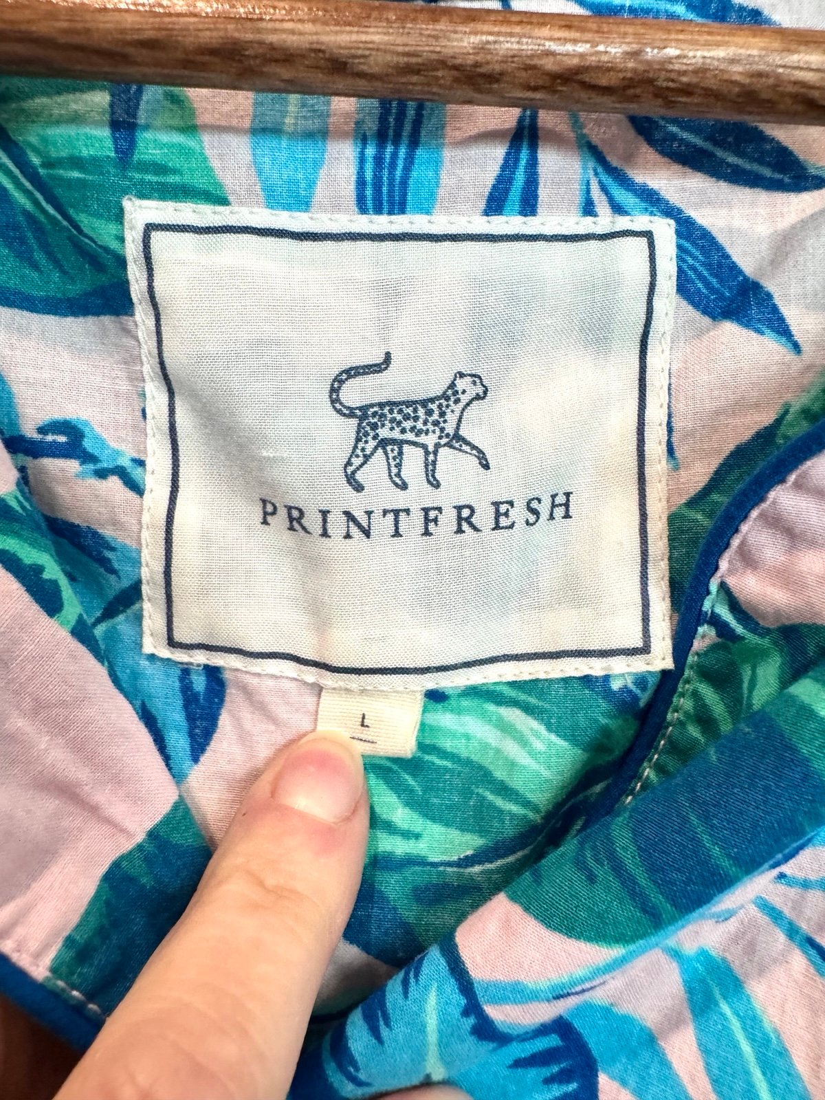 Printfresh Karma Chameleon Short Sleep Set Womens Sz Large Bubblegum Pink, Blue/Green Tropical Print. 100% Organic Cotton, Shorts Have Stretch Waist With Tie Up Closure, Side Slant Pockets, And A Cuffed Hemline. Shirt Top Is Collared With A Button Up Closure And. A Single Front Pocket. All Around Very Comfortable Pj Set! Excellent Like-New Condition. Measurements Are In Photos. There Are No Flaws To Note. Comes From A Smoke Free Home. Fast Shipping.