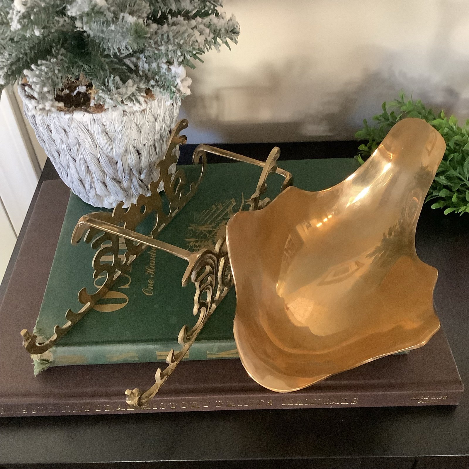 Beautiful vintage two-piece brass Santa's sleigh. Unique details with lots of character. A wonderful addition to any collection. Please view all photos closely for overall condition, items will arrive exactly as shown. Additional decor not included. Approximately 10" x 6" x 6" but that will vary slightly depending on how the seat is positioned on the base.